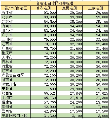 二、各省/市/自治區(qū)對二類醫(yī)療器械現(xiàn)行注冊收費標準: