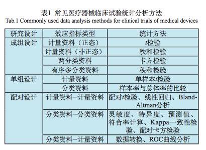 醫(yī)療器械的門類、功效非常多,為應對特定醫(yī)療器械的功效,應根據(jù)產(chǎn)品特點進行相應的科學設計,統(tǒng)計分析方法需結(jié)合研究設計類型和資料特征進行選擇。